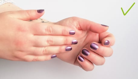 Nach abgeschlossener Maniküre folgt oft noch eine Pflegelotion für die Hände - doch Achtung! Gerade Pflegeöle lassen die Haut schnell glänzend und fettig aussehen. Warten Sie mit dieser Behandlung bis nach dem Foto.
